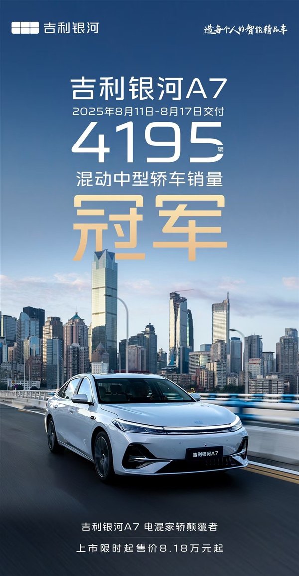 官方数据显示,在最新一周中,全新银河A7交付了4195辆,超越比亚迪秦L,成为了混动中型轿车销量冠军!