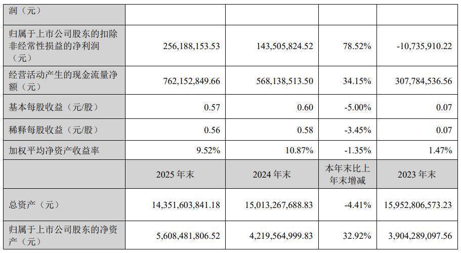 4月9日晚间,西子洁能(002534)公布2025年年报股票新闻,公司营业收入为62.41亿元,同比下降3.03%;归母净利润为4.37亿元,同比下降0.73%;扣非归母净利润为2.56亿元,同比上升78.52%;经营现金流净额为7.62亿元,同比增长34.15%。
