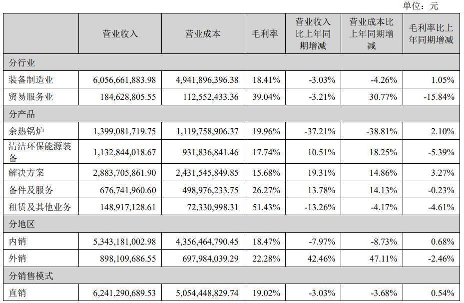 年报显示,公司传统主业锅炉业务大幅下滑是导致公司业绩陷入停滞的重要因素之一。年报显示,分产品看,公司报告期余热锅炉收入为13.99亿元,同比大降37.21%。